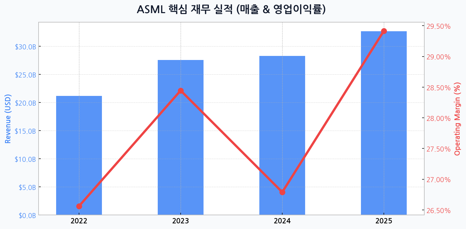 | 지표 | ASML (현재) | 글로벌 장비업체 평균 | 과거 5년 평균 |