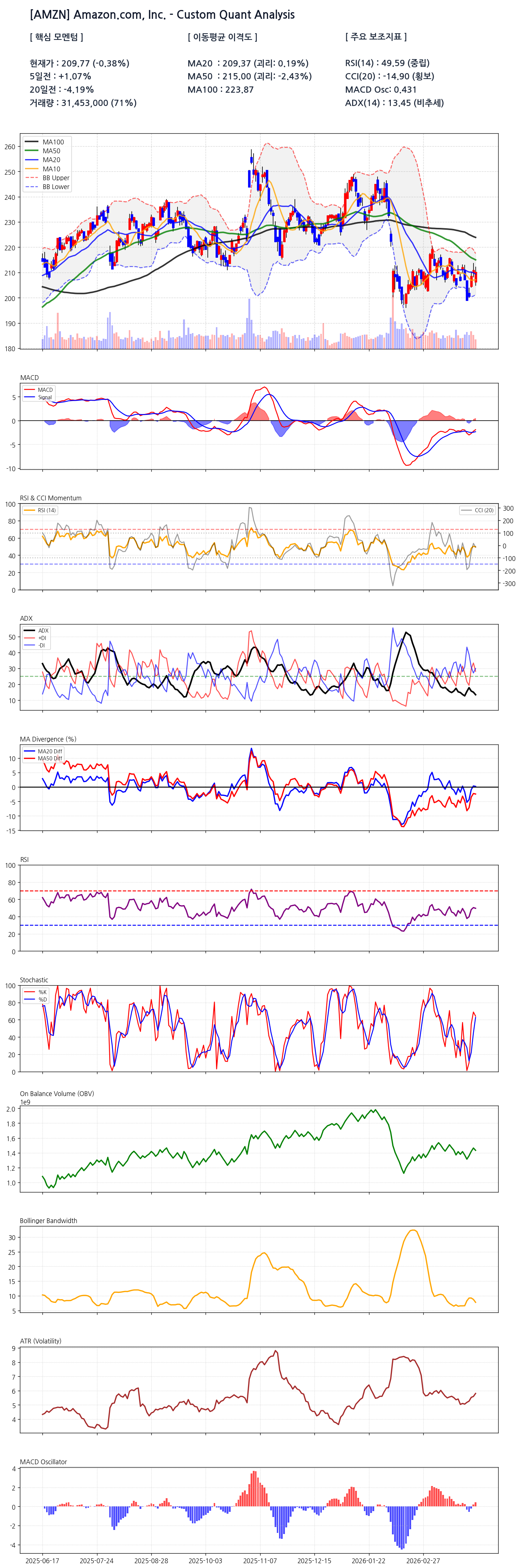 퀀트 데이터 대시보드: AMZN 현황 요약
