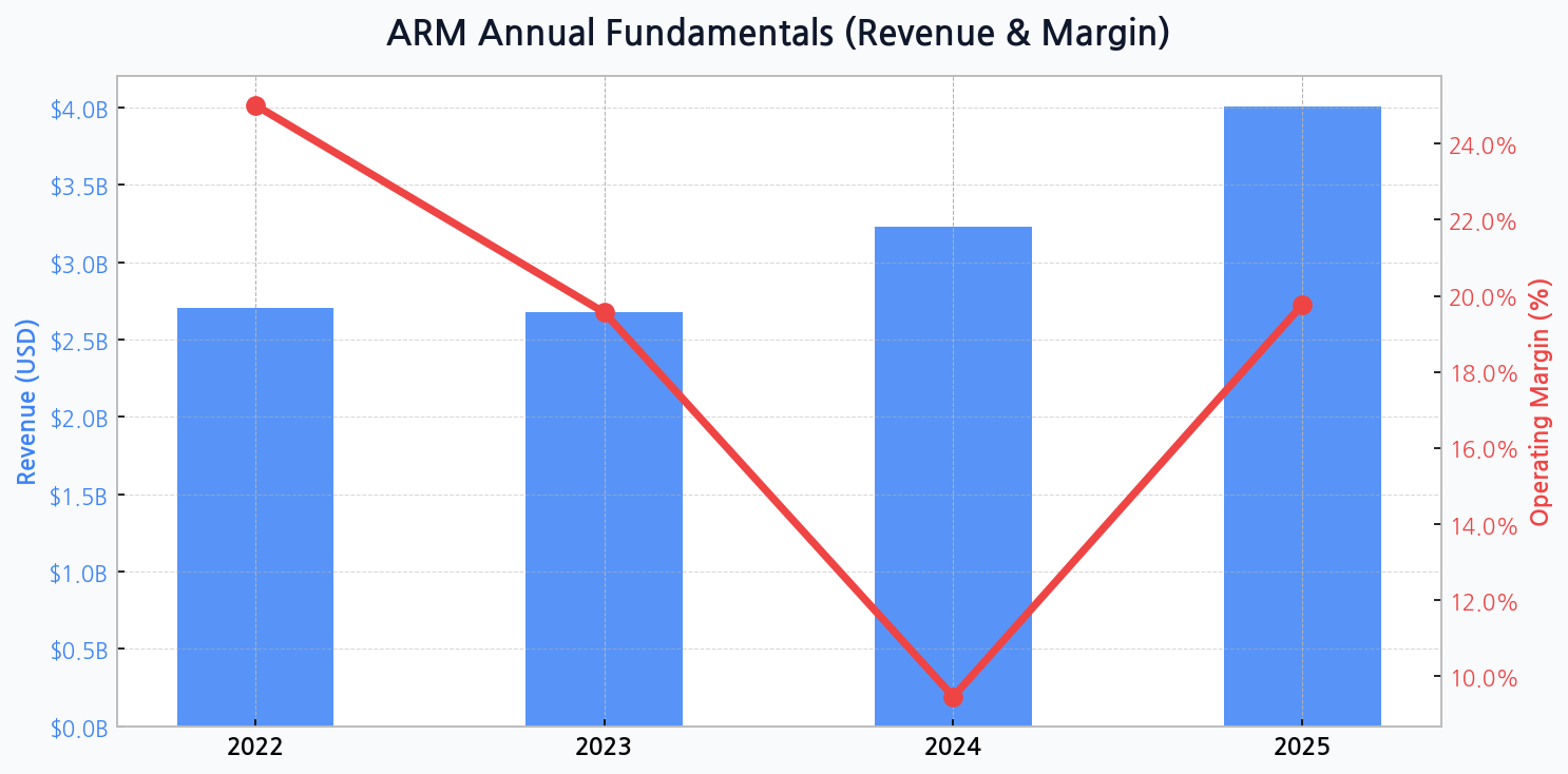 DIFF Insight: The stark contrast in valuation highlights ARM's unique position as an IP gatekeeper. Unlike its peers who sell physical chips, ARM sells the blueprints, creating a highly scalable and profitable model. However, this also makes it vulnerable to disruption from open-source alternatives like RISC-V, which threatens to commoditize its core offering.